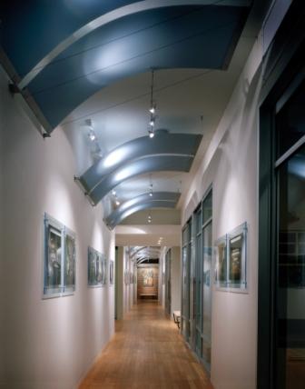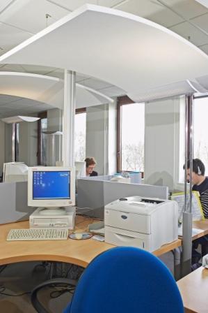 Dzięki tzw. sufitom pływającym możemy więc akcentować i wyróżniać konkretne miejsce w pomieszczeniu np. otoczoną z góry „skrzydłami” recepcję, stanowisko managera, kasy biletowe na lotnisku etc. Sąsiadujące ułożenie płyt, umożliwiające poprowadzenie linii, pozwoli sufitowi spełnić również rolę unoszącego się pod sklepieniem drogowskazu, wskazującego kierunek przemieszczania się, np.: w obrębie biura, sali wystawowej czy biblioteki.