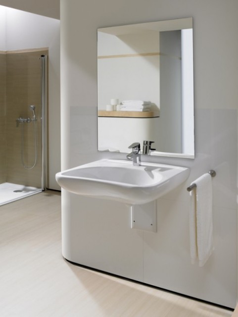 Bardzo istotną cechą łazienki użyteczności komercyjnej czy publicznej jest jej dostępność dla osób niepełnosprawnych. Projektanci Roca stworzyli specjalną serię „Dostępna Łazienka”, która znacznie ułatwia codzienną toaletę nie tylko gościom na wózkach inwalidzkich, lecz także osobom starszym, dzieciom i rodzinom. W jej skład wchodzi m.in. umywalka z otworem na baterię, której płaska konstrukcja i profil przedni umożliwiają korzystanie osobom poruszającym się na wózkach inwalidzkich. Kompakt wc z tej serii to miska wc o wysokości 48 cm, zgodna ze standardową wysokością wózka inwalidzkiego oraz zbiornik wc z mechanizmem spłukującym 3/6 l. Miska wc podwieszana charakteryzuje się przedłużoną konstrukcją wynoszącą 70 cm, która pozwala łatwo i bezpiecznie korzystać z toalety. W skład kolekcji wchodzą także: baterie z uchwytem lekarskim Victoria (wyposażona w system „ecodisk” zapobiegający poparzeniom) oraz zestaw uchwytów: umywalkowy, ścienny, stały ścienny i uchylny. Uchwyty dostępne są w kilku wersjach: prosty, poziomo-pionowy „L” i ścienno-podłogowy. Serię uzupełniają lustro uchylne oraz krzesełko prysznicowe składane do montażu w kąciku kąpielowym.